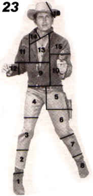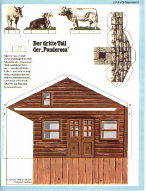 24 Ponderosa Bei diesem Star-Schnitt war ein Bastelbogen aus zu schneiden, der 'Star' war das Haus der Cartwrights mit dem, was so dazu gehörte: Bäume, Vieh und natürlich die Familie Cartwright ... |